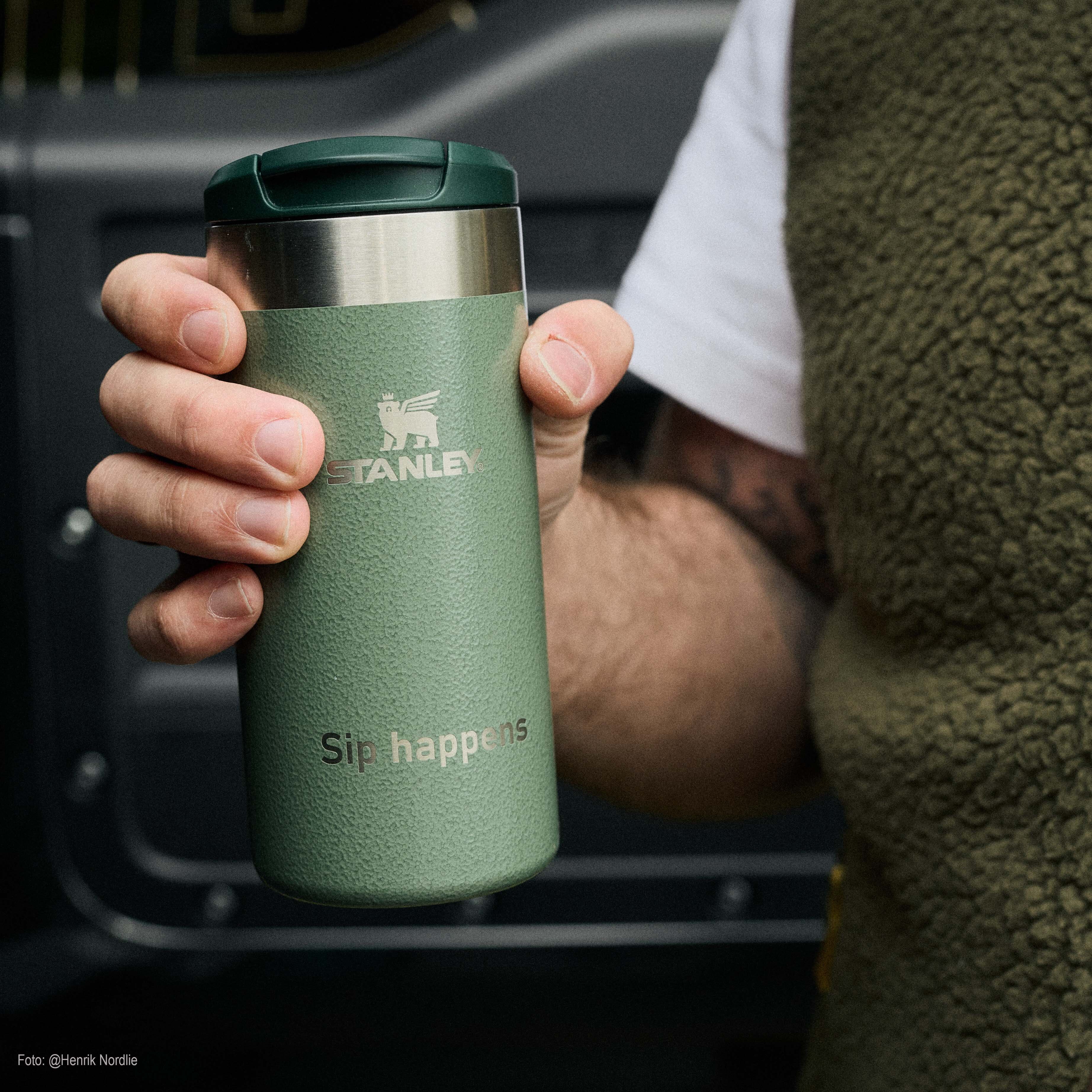 Stanley Tumbler: Plassering på fremsiden, på øvre del av koppen.