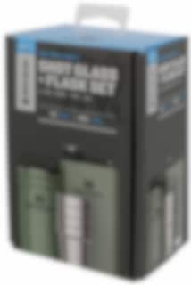 De fire glassene kommer i en praktisk oppbevaringsboks med skrulokk. Volum per glass: 59 ml. Alle deler er laget i kraftig rustfritt stål, og er naturlig BPA- fri. Volum på lommelerken: 236 ml.