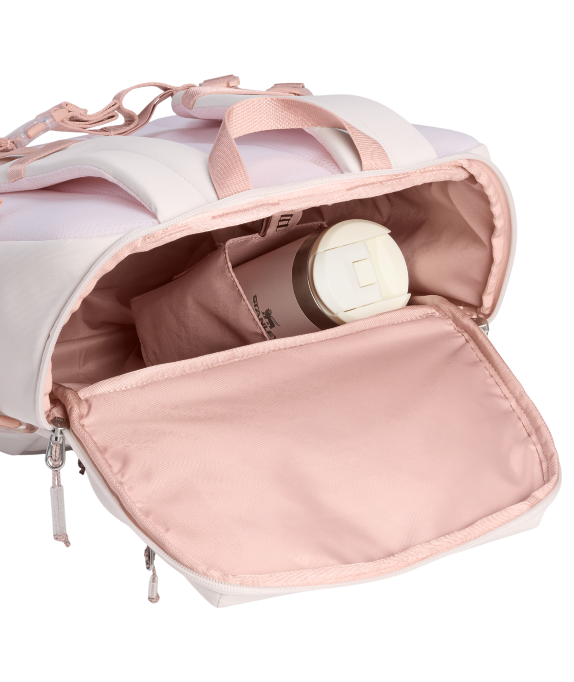 - Stropp og lomme for drikkeflaske (IceFlow™ og Quencher® kompatibel)