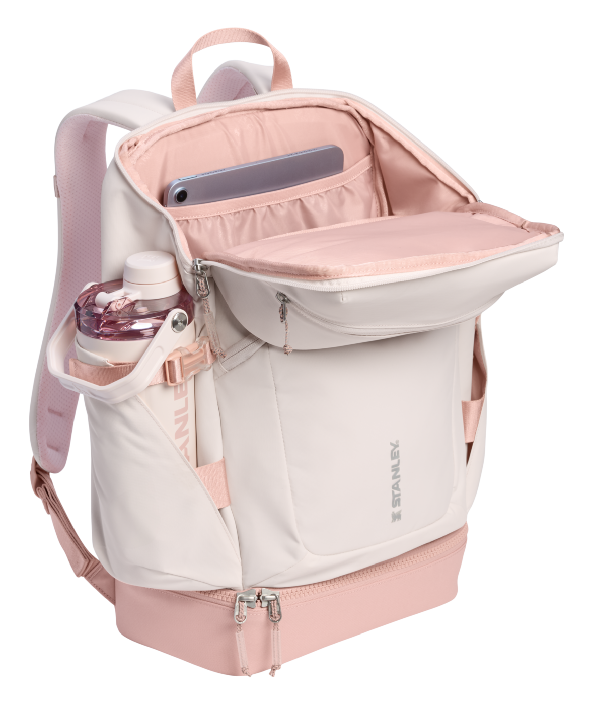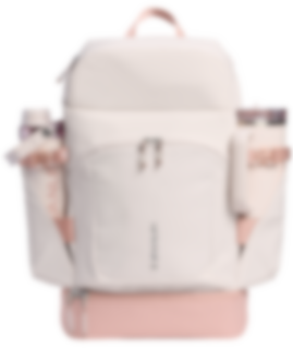 Innvendig har det romslige hovedrommet plass til både laptop (opptil 16") og ekstra klær eller jakke. Det utvidbare bunnrommet med glidelås gir ekstra plass til matbokser, sko eller treningsklær.