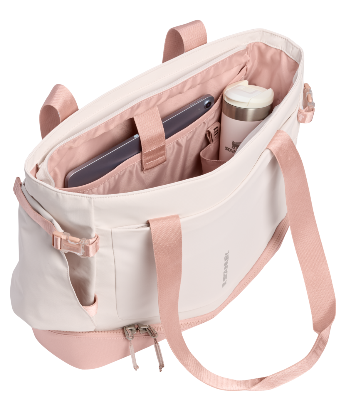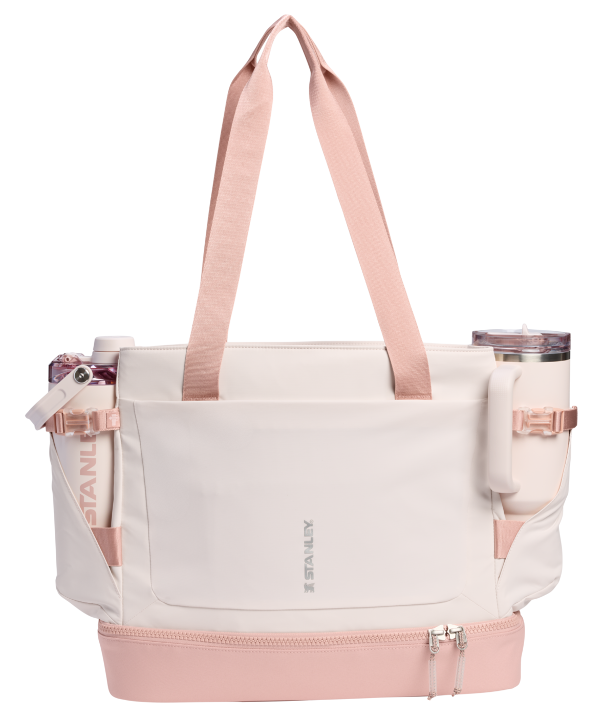 Vitalize™ Macro Method Tote rommer alt du trenger. På utsiden holder en smart stropp og lomme drikkeflasken din (1.18 L Quencher® ProTour eller Vitalize™ Shaker) lett tilgjengelig. Frontlommen med glidelås gir plass til mobil, nøkler og lommebok.