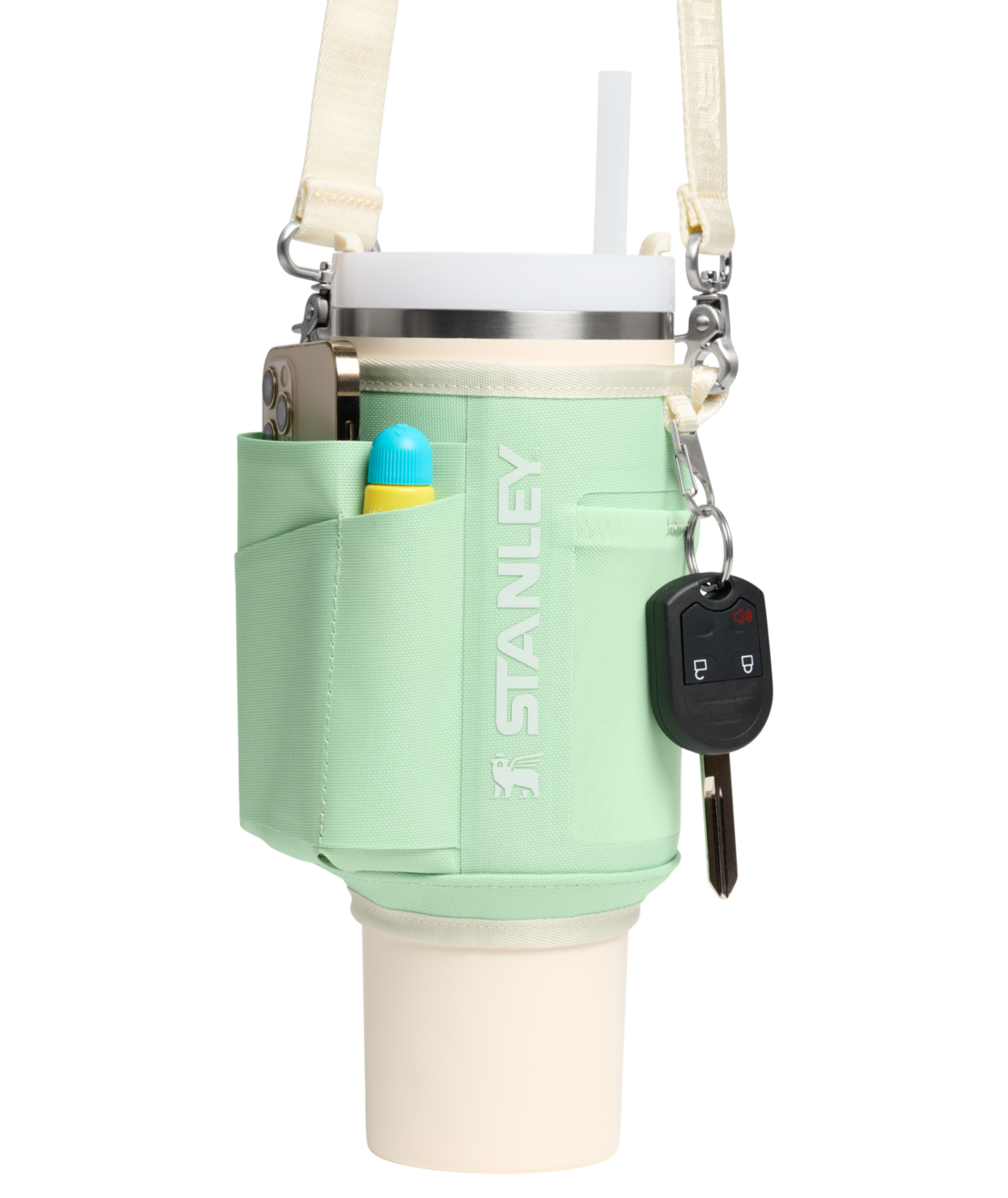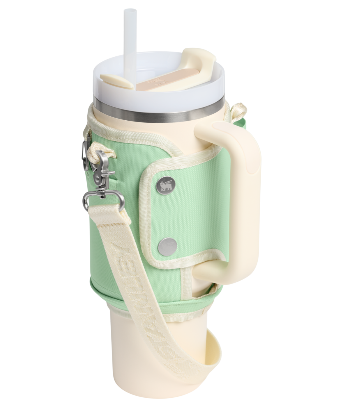 Fest den justerbare stroppen på tvers av kroppen, og beveg deg fritt med begge hender ledige. Den slitesterke stroppen, foret med et unikt winged bear-mønster, festes sikkert rundt din 1.18L Quencher med en dobbel trykknapplukking.