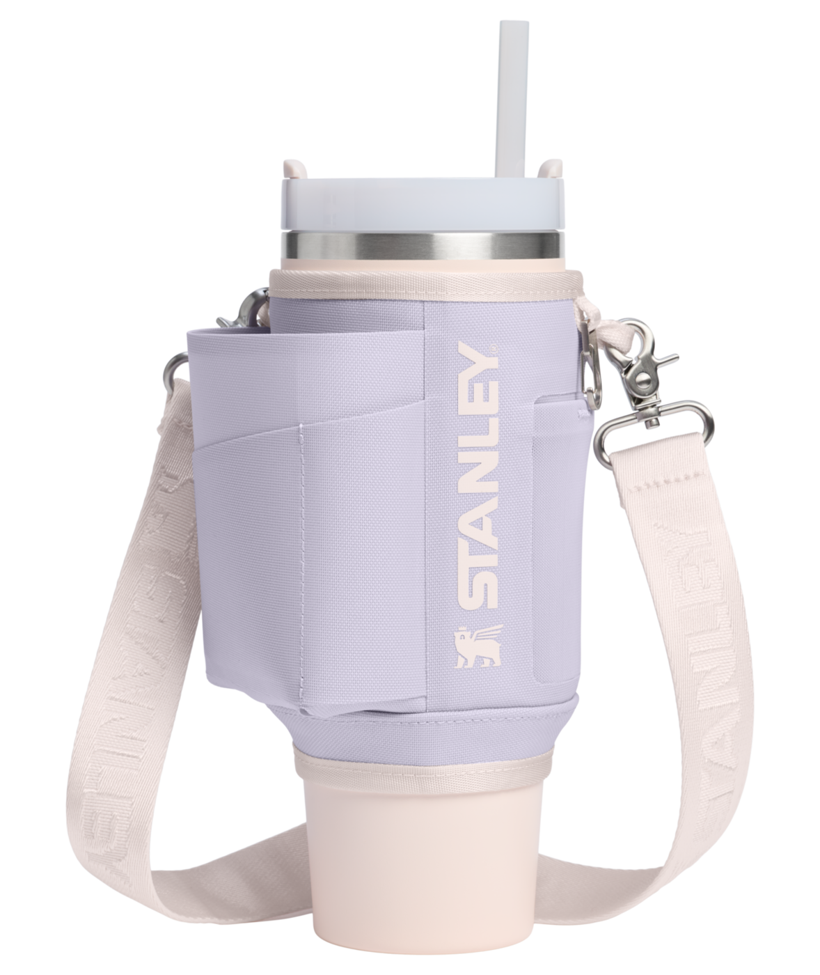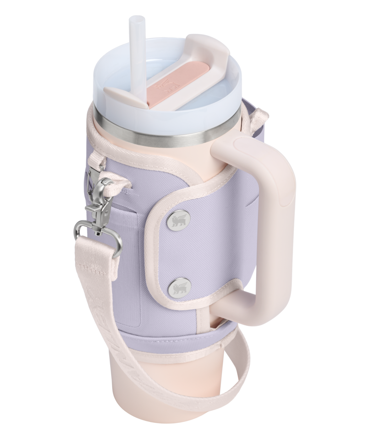 Fest den justerbare stroppen på tvers av kroppen, og beveg deg fritt med begge hender ledige. Den slitesterke stroppen, foret med et unikt winged bear-mønster, festes sikkert rundt din 1.18L Quencher med en dobbel trykknapplukking.